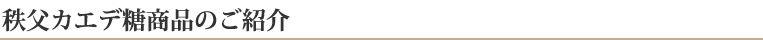 モンドセレクション金賞・インターナショナルハイクオリティー賞受賞「秩父カエデ糖たると」相生町水戸屋 モンドセレクション金賞・インターナショナルハイクオリティー賞受賞「すのうぼうる」栗助 モンドセレクション銀賞受賞「カエデ山の玉手箱」栄誠堂 「ちちぶの恵み」秩父中村屋 モンドセレクション銀賞受賞「カエデの樹」水戸屋本店 モンドセレクション銀賞受賞「ちちぶまゆ」秩父中村屋 モンドセレクション銀・銅賞受賞「楓のおくりもの」江原本店